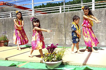 今回はプアオレナとホノルルハーバー、ケイキはフキラウソングを踊りました。