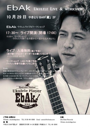 10月29日(土)EbAkさんのウクレレ・ライブがあります 🙂