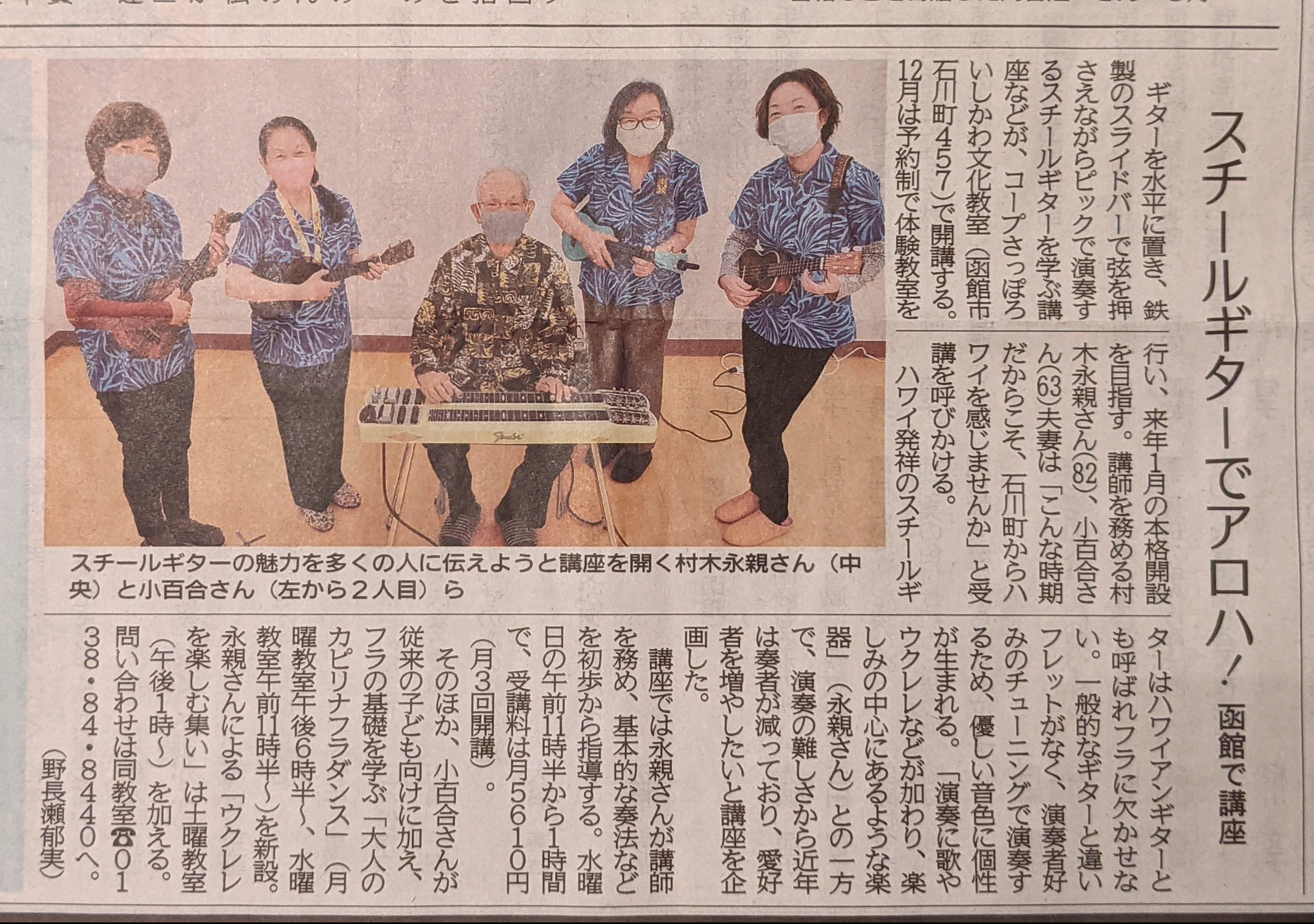 いしかわ文化教室ではスチールギター・ウクレレ・フラダンスと